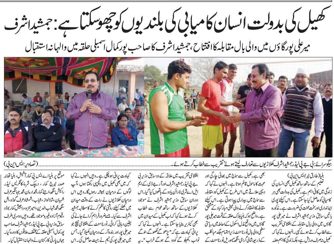 Sahara Urdu’s coverage of Jamshaid Ashraf’s support and involvement in encouraging sports for the youth. Photos from the Volleyball tournament in Mir Alipur.